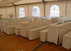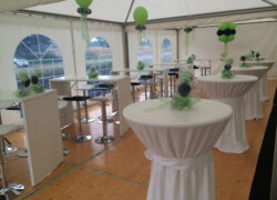 Erst mit der Dekoration wird das Fest einzigartig! Ob rustikal, oder edel oder als Mottoparty, ob mit transparenter Zeltplane, LED-Strahler, Hussen für Stühle und Stehtische, Brückentische und vieles mehr.