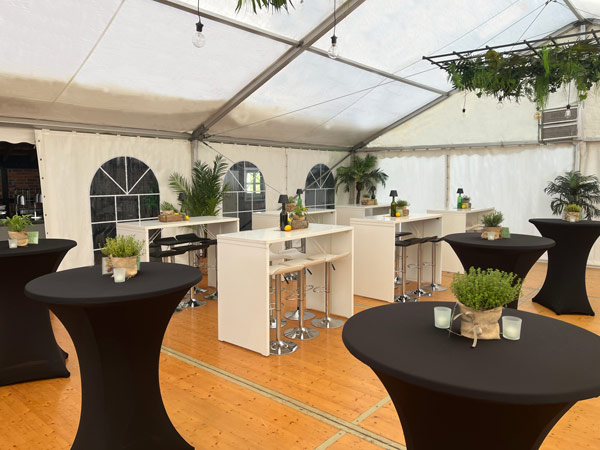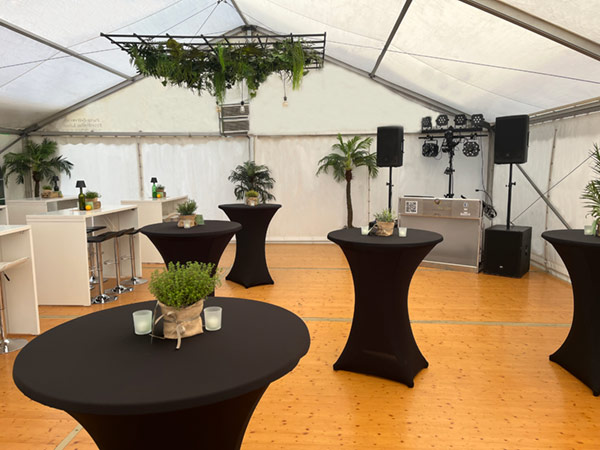 Erst mit der Dekoration wird das Fest einzigartig! Ob rustikal, oder edel oder als Mottoparty, ob mit transparenter Zeltplane, LED-Strahler, Hussen für Stühle und Stehtische, Brückentische und vieles mehr.