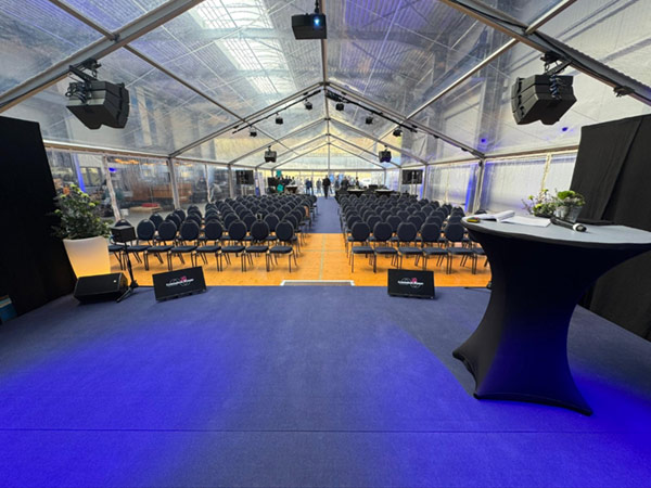 Durch die indirekte Beleuchtung wird eine einzigartige, stimmungsvolle Zeltatmosphäre Ihrer Veranstaltung geschaffen. Der Outdoor-Strahler verfügt über ein wetterfestes Gehäuse und ein Mischpult.